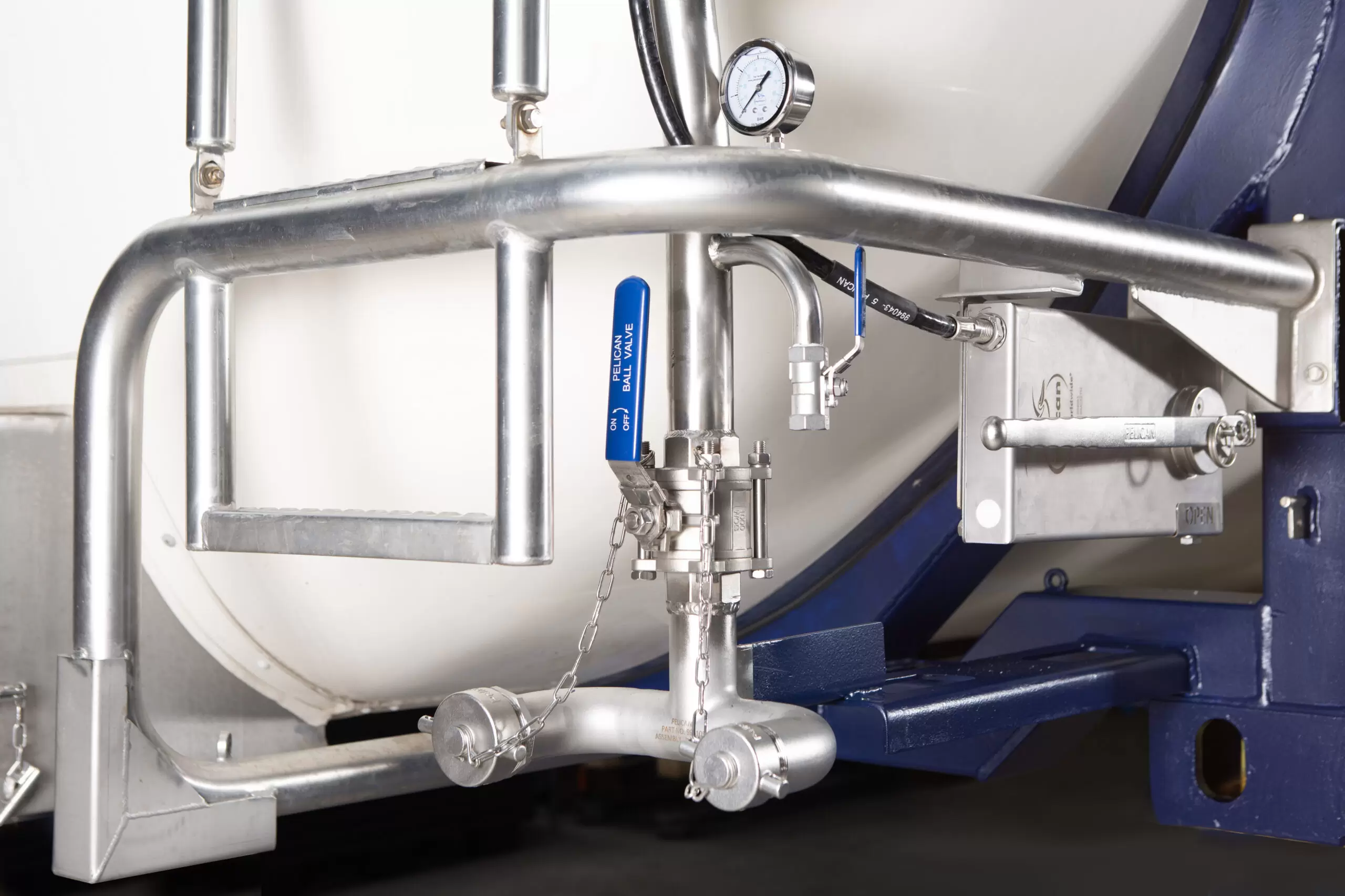 Climbing on top of tank containers poses a significant fall risk, but Pelican G.O.V.R systems eliminate this danger by allowing operators to control the airline valve safely from ground level, while ensuring the valve pressure setting complies with M.A.W.P.